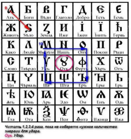 Читаете всю чистку по кругу 1,2, 3,4 раза без буквы Оук это раскручивание Булавы для удара, а затем когда раскрутили Булаву, читаем Оук - это удар.
